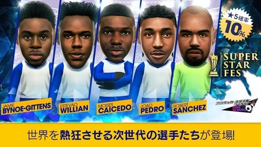 「モイセス・カイセド」「エステバン・ウィリアン」「ジョアン・ペドロ」「ジェイミー・バイノー・ギッテンス」「ロベルト・サンチェス」といったイングランド強豪クラブのスーパースターが、得意戦術中央突破の新★5選手として登場する“SUPER STAR FES”を開催! あわせて、★4バージョンの選手たちがもらえる“スペシャルログインボーナス”も実施します。