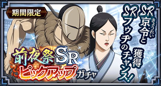 SR★4武将排出確率が通常時と比べて6倍にUPします!
