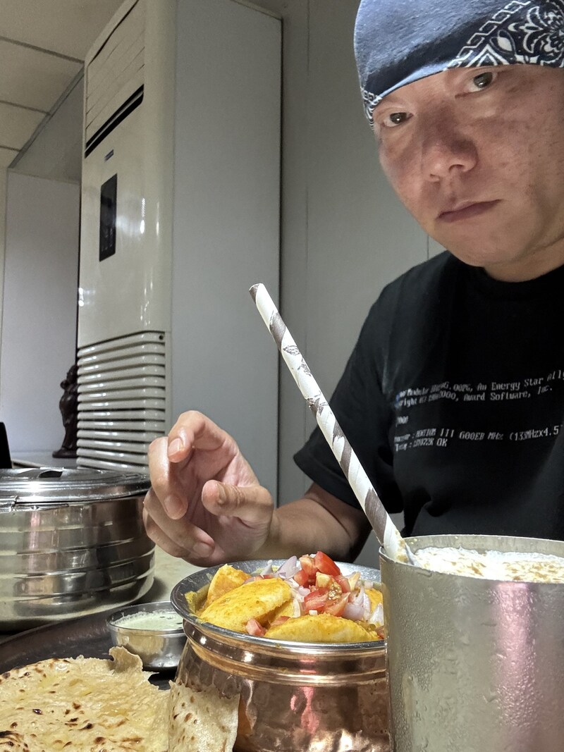 ニューデリーのインドカレー屋でも、カレーについてきたラッシーが泡立っていました。