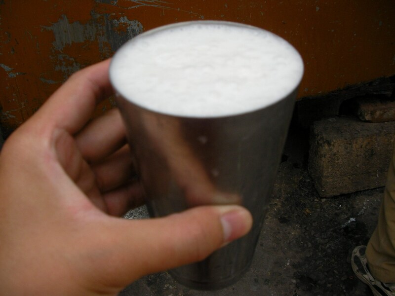 ニューデリーのラッシー屋で立ち飲みしたラッシーも泡立っていましたよ。