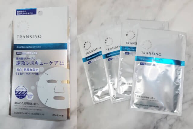 ▲トランシーノ「薬用ブライトニングフェイシャルマスク」 20ml×4枚入り ¥2,200(税込)