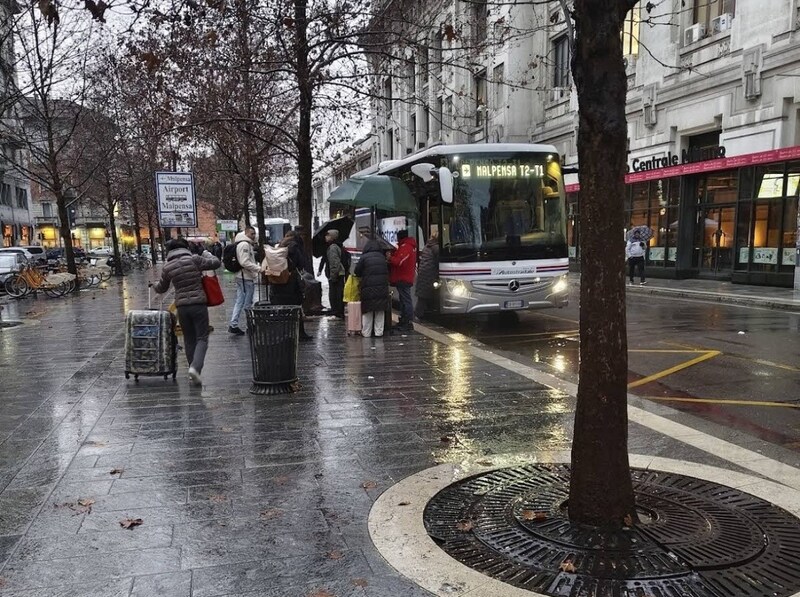 中央駅の北側、Piazza IV Novembre(ピアッツァ・クアットロ・ノヴェンブレ)にマルペンサ空港行きのバス乗り場があります。