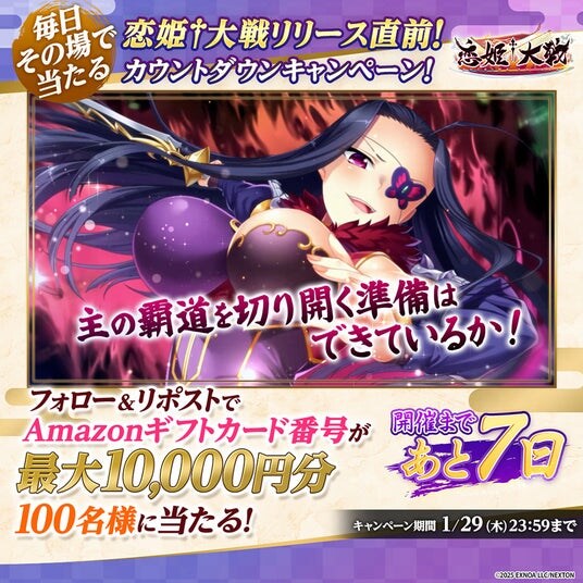 恋姫†大戦公式Xで「恋姫†大戦リリース直前カウントダウンキャンペーン」を開催いたします。