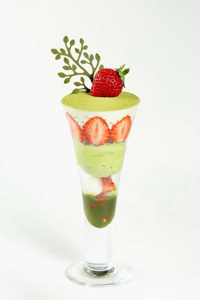 東北店舗で味わえる『あまおういちごの抹茶ティラミスパフェ』は、濃厚な甘みのあまおういちごと抹茶を組み合わせた大人の味わい。
