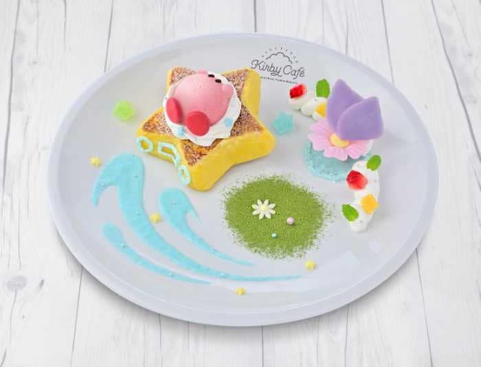 エアライダーの爽快感と、カービィカフェならではの可愛さを一皿に詰め込んだ「風になれ!エアライダーのフレンチトースト」。