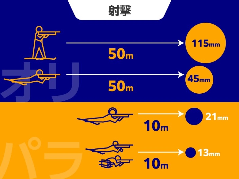 パラリンピックの選手は、スキー区間ではライフルを携行せず、射場で受け取る。肢体不自由の選手は自前のエアライフルを使用し、射場に到着するとコーチが射撃マットまで運ぶ。視覚障がいのある選手は射撃マットに常設されている、標準化されたビームライフルを使用する。これは全選手共通。標的は10m先に設置されており、標的の大きさは視覚障がい者用が21mmで、肢体不自由者用の標的は13mmとなっている。選手は伏せた姿勢で射撃を行うが、障がいのため伏せた姿勢での射撃が不可能な一部の座位選手は、座った姿勢で射撃を行う場合がある。なお、視覚障がいのある選手は、射撃時に標的の位置が音でわかるようになっている。