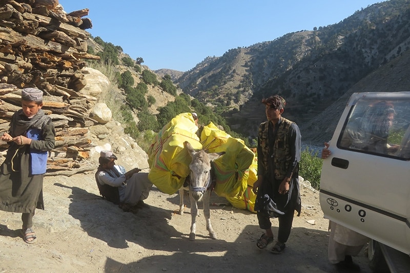 舗装されていない道や、車が入れない場所では、人の手によって運ばれることもあります。