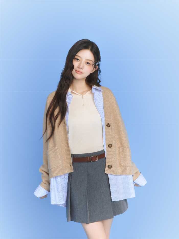 MINJUさん:スフレヤーンショートカーディガン(ベージュ)