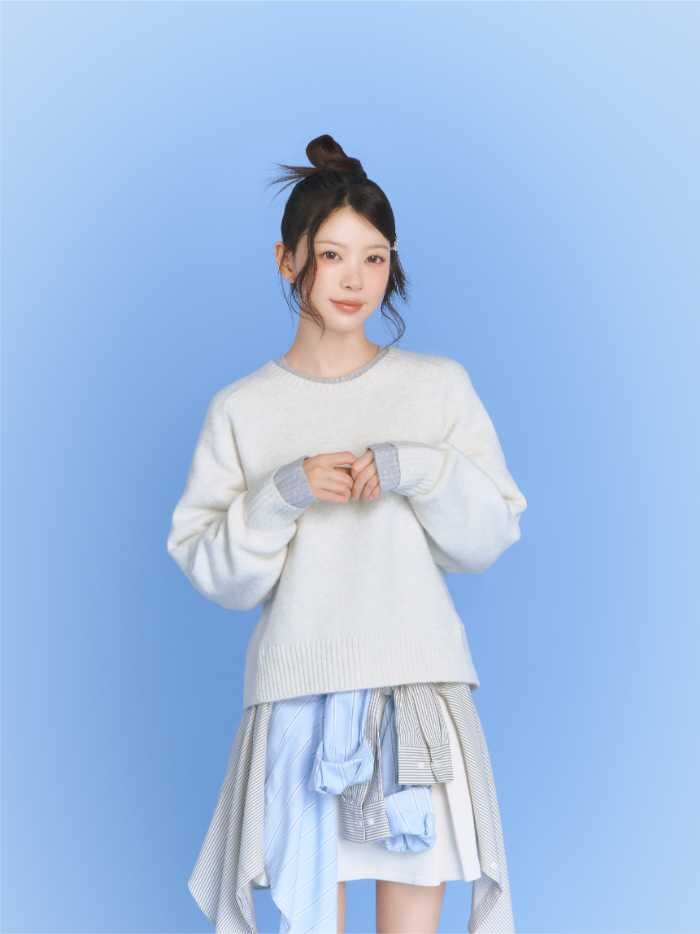 MOKAさん:スフレヤーンクルーネックセーター(オフホワイト)