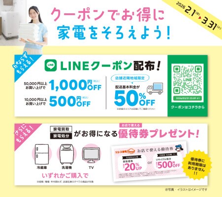 本キャンペーンでは、新生活を始める方や買い替えを検討している方に向けて、割引クーポンの配布や配送割引など、嬉しい特典をご用意しました。