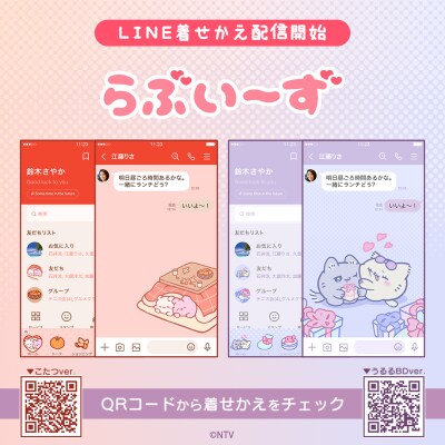 大人気キャラクター「らぶいーず」のLINE着せかえ最新作2点がインクルーズの販売アカウントより一斉に配信開始!最新作はすもっぴとぴょんちーがこたつで温まっているデザインと、うるるのバースデーデザインとなっております。お気に入りのデザインにLINEを着せかえてお楽しみください!