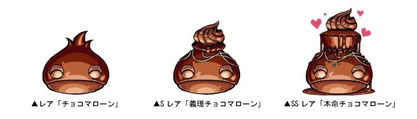 本ダンジョンでは、「自分級」「母親級」「義理級」「本命級」「真・本命級」の5階級に難易度が分かれており、バレンタイン限定の「チョコマローン」やボスモンスターが出現します。ぜひ挑戦してみてください!