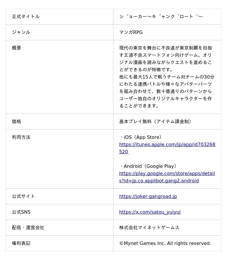 マイネットゲームス及び「ジョーカー~ギャングロード~」は、ユーザーの皆さまのご愛顧に感謝し、今後も皆さまに長くワクワクをお届けできるようさらなる歩みを続けてまいります。