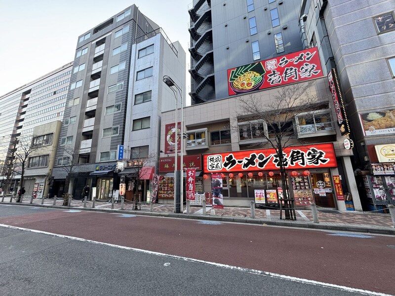 斜め向かいあたりに資本系の家系ラーメン屋「壱角家」がありましたよ。