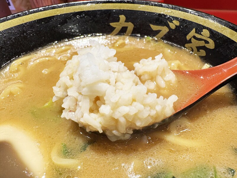 スープをライスにかけるのではなく、レンゲでスープにライスを沈めて食べると美味さが際立つ気がします。