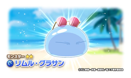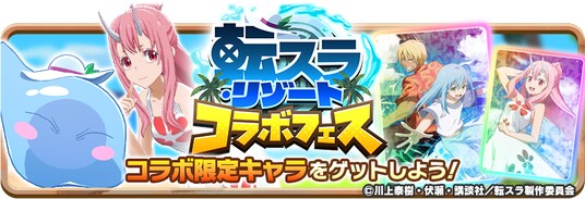本コラボを記念して、『劇場版 転生したらスライムだった件 蒼海の涙編』をモチーフにしたコラボモンスター、ネンドロ種「リムル・リゾート」、キュービ種「シュナ・リゾート」、コラボアシストカード「【波乗りテンペスト】リムル&ヴェルドラ」、「【陽だまりの巫女姫】シュナ」が手に入るガチャイベント「転スラ・リゾートフェス」を開催します。「転スラ・リゾートフェス」では、★3モンスターの出現確率が15%→20%にアップします。