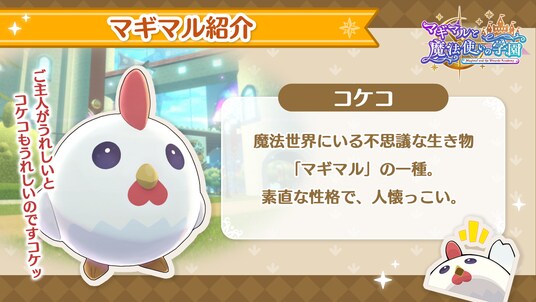 マギマルは、魔法世界に住む不思議な生き物です。マギマルにエサをあげると「マテリアル」と呼ばれるエネルギーの結晶を生み出すことがあります。マギマルをお世話しながらマテリアルを集めて、交換所で素敵なアイテムを入手してください。