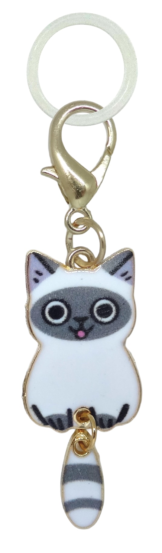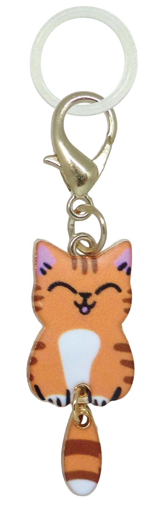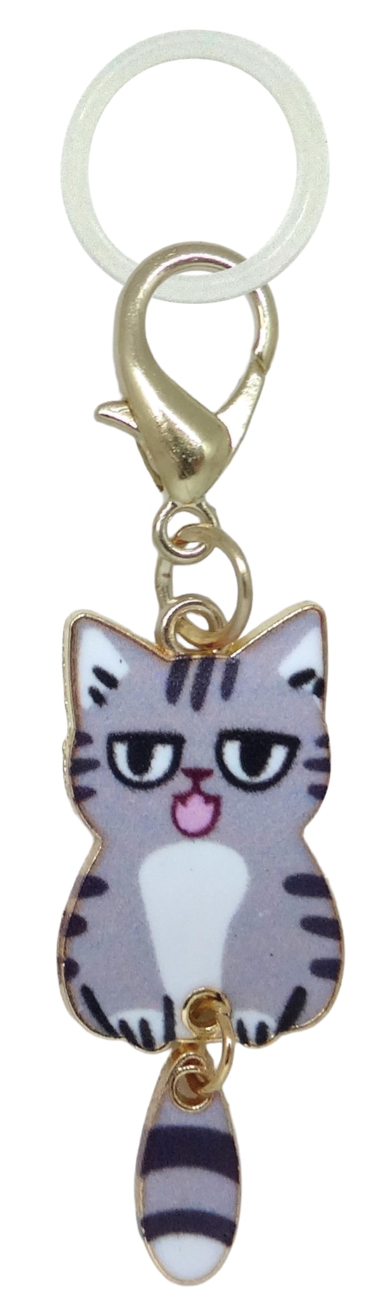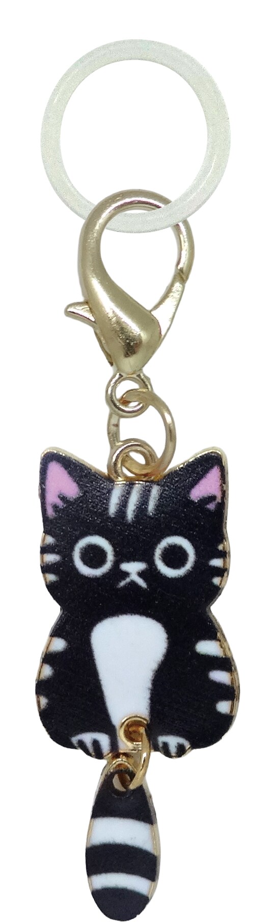 しっぽがゆらゆら揺れる姿がなんとも愛らしい、猫のめじるしチャームのご紹介です。 自分の持ち物がひと目でわかる目印としてはもちろん、見た目の可愛さも楽しめるデザインです。 ふと視界に入るたびに気持ちがほっと和らぐ、癒しのアクセサリーとしても活躍します。