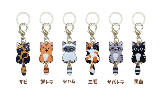 6種類の豊富なバリエーションで、好きな猫がきっと見つかる! 実用性も高い、流行のめじるしチャーム『ゆらゆらしっぽのめじるしねこチャーム』 がカプセルトイに登場。