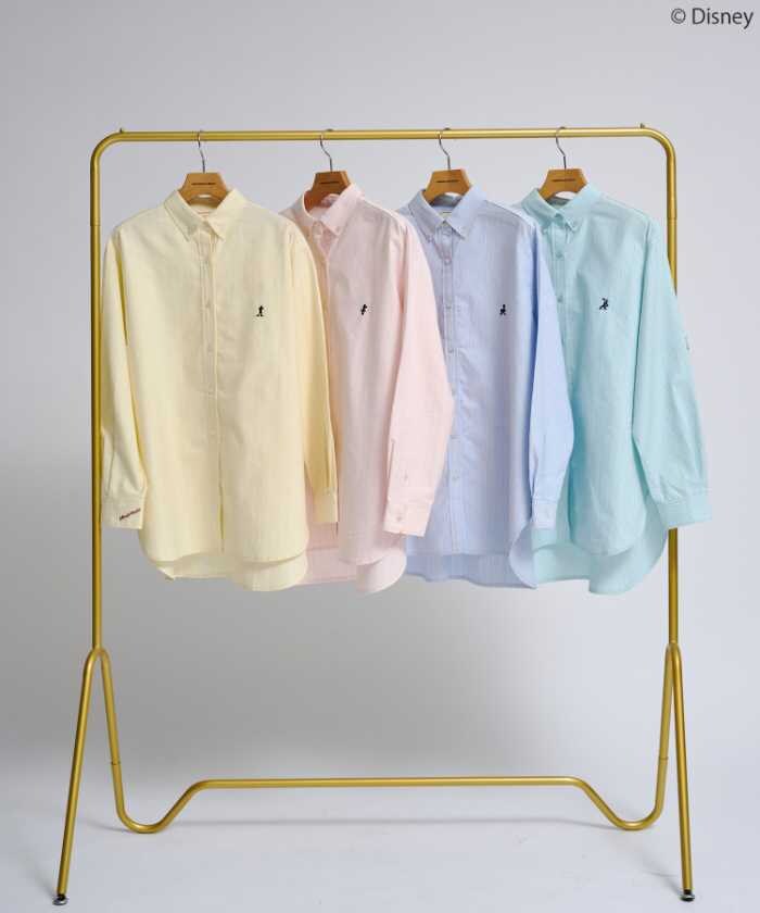 【ボタンダウンシャツ】はPink/Yellow/Mint/Blue、4,990円。胸元や袖口、背面まで遊び心が散りばめられ、すべてフリーサイズで展開します。