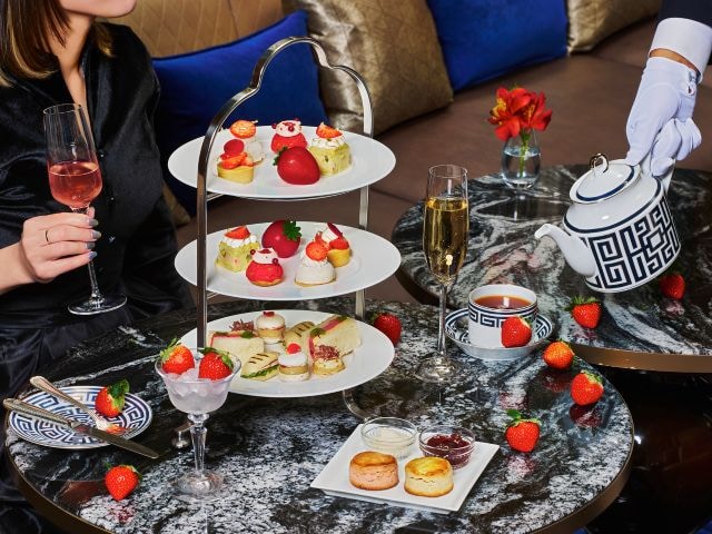 ストロベリーをテーマにしたアフタヌーンティーを、おしゃれなバー空間で開催。
