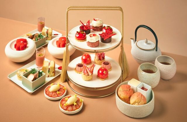9種のスイーツには、京都府八幡市の「おさぜん農園」から直送される完熟イチゴを使用。セイボリーは、「ストロベリーガスパチョ」をはじめサンドイッチやキッシュなど4種が。ドリンクは、京都の老舗「小川珈琲」によるヒルトン京都オリジナルブレンドをはじめ、和紅茶や宇治産の玉露など、厳選セレクションがスタンバイします。