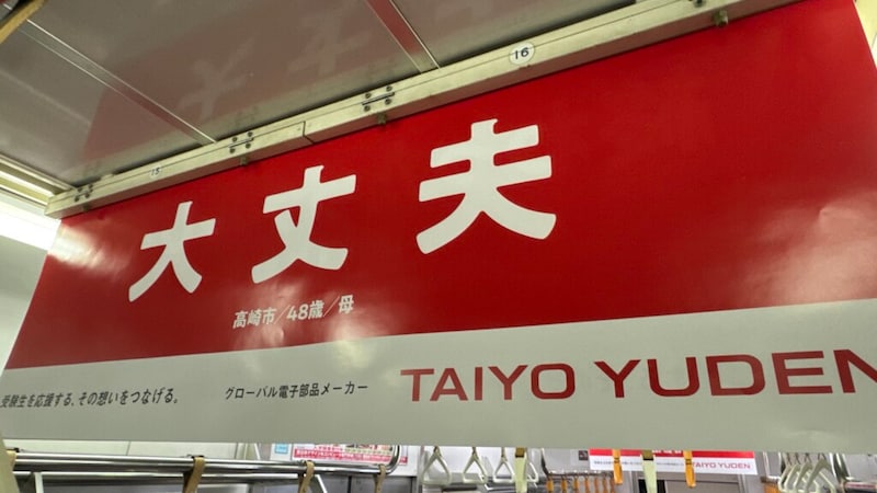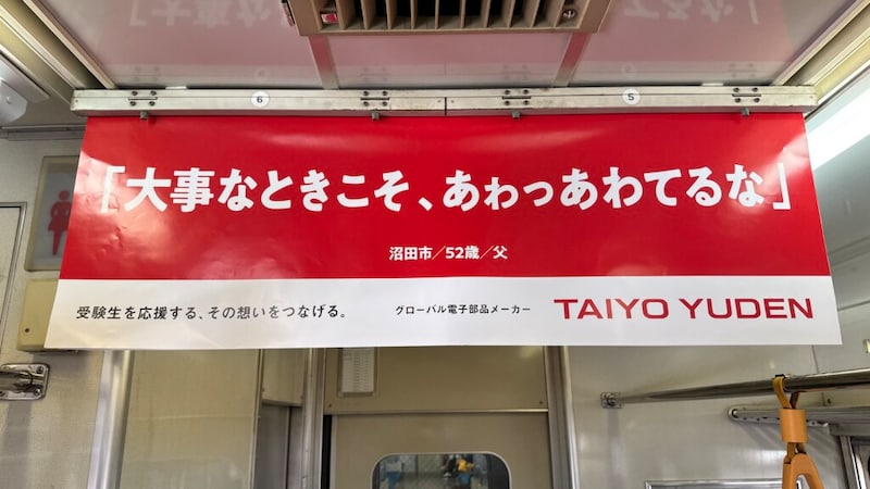 1月から高崎市周辺の電車に掲載されている中吊り広告が受験生を応援するメッセージで統一。地域色豊かで、思わず顔がほころぶようなコピーの数々が、利用者の共感を集めている。