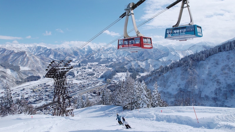首都圏から新幹線で約70分、JR越後湯沢駅から約2分の無料シャトルバスでスキー場の麓に到着。湯沢高原は、麓から世界最大級166人乗りのロープウェイで7分間で一気に標高1,000mの山頂へアクセスできるというダイナミックさが特徴だ。「7分間の空中散歩」をぜひ味わってみたい。