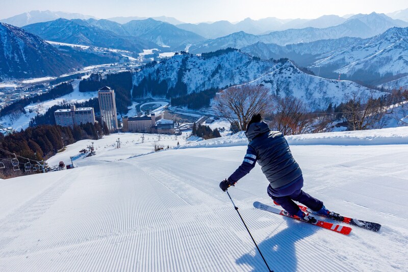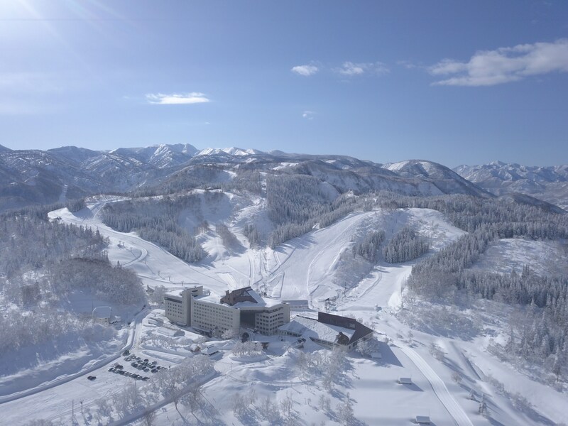 塩沢石打ICよりたったの1分! というマイカー派にはたまらなく便利なロケーション。 ゲレンデは3つのエリアにより構成され、ビギナーやキッズからエキスパートまで満足の全26コースを揃えて、その最長滑走距離は約6000mにもなる。自然豊かな地形を活かし、奥添地エリアを中心に非圧雪やツリーランのコースも充実。北向きのコースが多く、サラサラの魚沼パウダーが積もり良いコンディションが維持されやすいため、絶好のフリーライドゾーンとなっている。