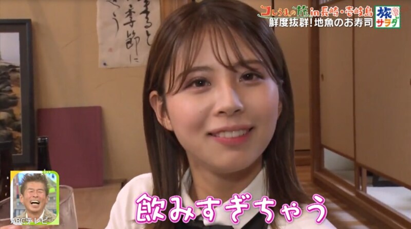 【TVer】大仁田美咲アナはロケ先で1軒目から焼酎をロックでグビグビ! 「(地魚の寿司と)すごく合います!」「あぁ……飲み過ぎちゃう」
