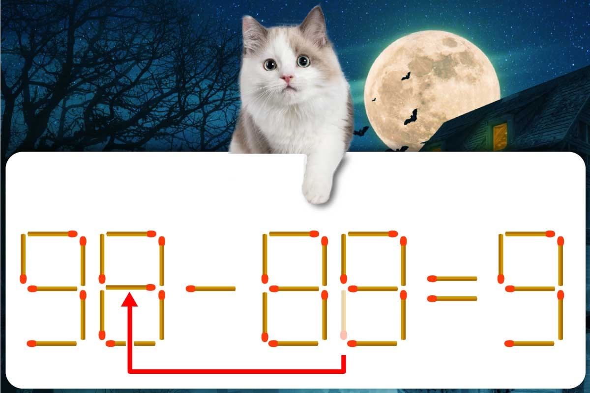 「8」のマッチ棒を1本、「0」に移動させて「8」を作り、「98-89=9」にする。