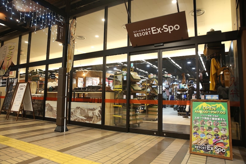 JR越後湯沢駅の改札を出てすぐ、アウトドアショップ RESORT Ex-Spo。冬はスキー、スノーボードグッズ、夏はアパレルやキャンプ・登山用品を中心に、充実のラインナップ。お隣は「And tap cafe」、美味しいコーヒーやクラフトビール、こだわりのサンドが楽しめる立寄りカフェだ。ショップでは、有名ブランドのスノーアイテムから、ここでしか手に入らないオリジナルグッズ、子どもの雪遊びアイテムもラインナップ。ゲレンデに行く前にぜひ立寄りたい。