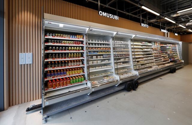新店舗では、大阪・関西万博店で使用した「開幕前の工事現場で活躍した無人型トレーラーハウスを模した冷蔵什器」や、「リサイクルアクリルを使用した商品サイン」などを移設・再利用しています。
