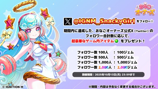 Xフォロワーが2,000人を達成すると、なんとガチャで使える「ジェム」が合計2,000個もゲットできる!今すぐXをフォローして、最新情報をチェック!