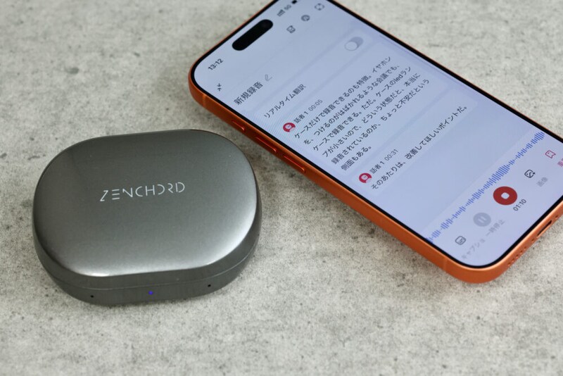 本機の場合、イヤフォンのタッチパネルか、ケースのボタンを2秒間長押しすると録音が始まるが、正常に録音されているか知る術はハードウェア的には存在しない。イヤフォンにはLEDがあるが装着している当人には見えないし、ケースのLEDも小さなもので観察するのは難しい。つまり、アプリを開いて文字起こしされているかを確認するしかない。