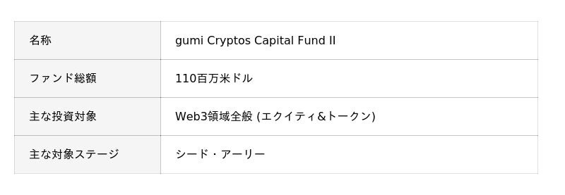 ■gumi Cryptos Capital Fund IIの特徴: