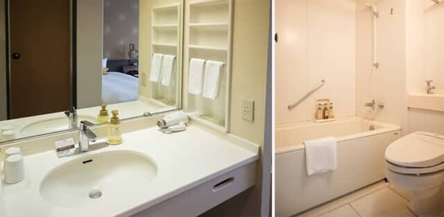 スーペリアツインのマウンテンサイドは洗面が室内にあってバス・トイレが一緒。フォレストサイドの水回りは3点式になっています。