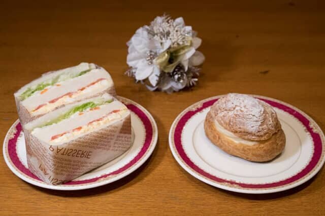 駒ヶ岳の形をモチーフにした「駒ヶ岳でしゅ~」は、巨大でシュー生地がサクサク。カスタードクリームもたっぷり入っていますが、優しい甘さで女性でもペロリと食べられる人気商品。サンドウィッチはランチにおすすめの具だくさん。どちらも満足感たっぷりです。