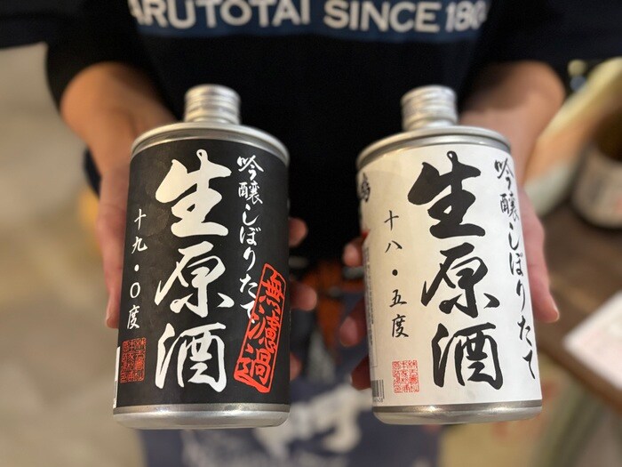 しぼりたて生酒の若々しさが特長の「鳴門鯛 吟醸しぼりたて生原酒」(生缶)、フルーティでスッキリした味わいが特徴の「ナルトタイ 純米原酒 水ト米」など、パッケージデザインもオシャレなものがたくさんあります。