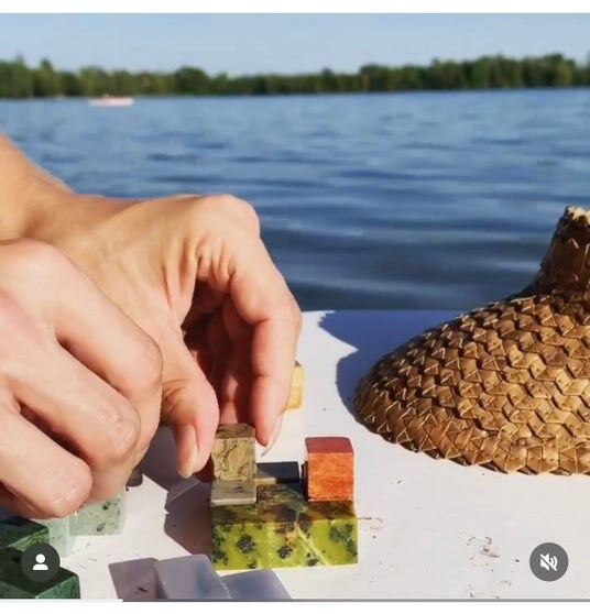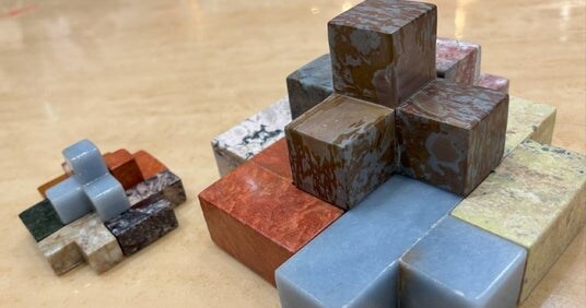 鑑賞だけではない、触れて癒される ヒンヤリ天然石パズル、で遊ぶ体験。 ピラミッド型
