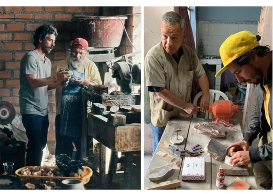 山を登り、地層を探し、砕き、削り、磨くすべての工程は、マンパワーによって支えられています。