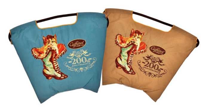 第6弾コラボでは、カファレルの歴代コレクションの中でも特に人気の高い、アンティーク調の長靴を履いたねこのイラストと「カファレル200周年ロゴ」を採用。