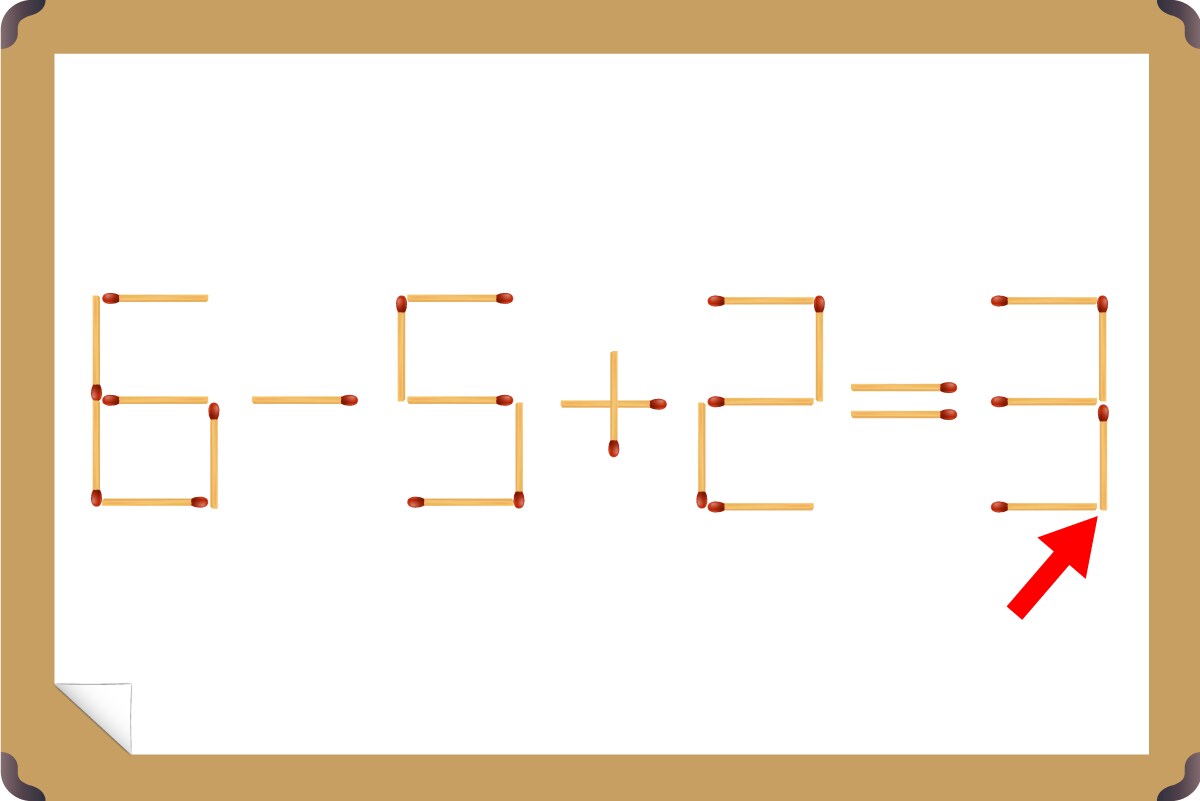 「2」の縦マッチ棒を1本、右に移動させて「3」を作る。