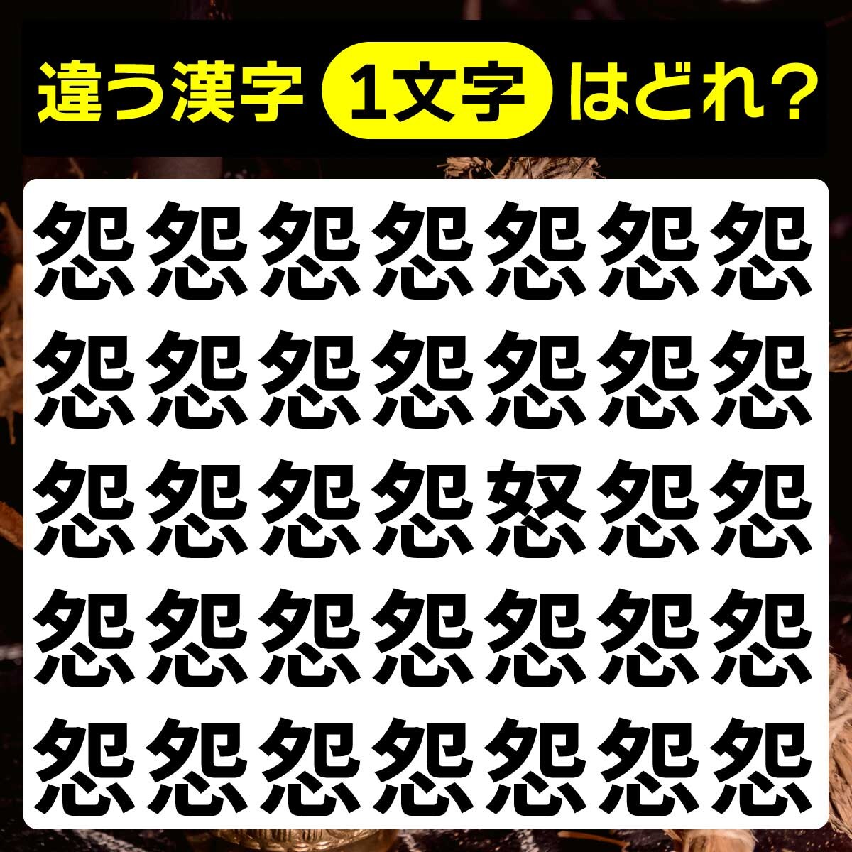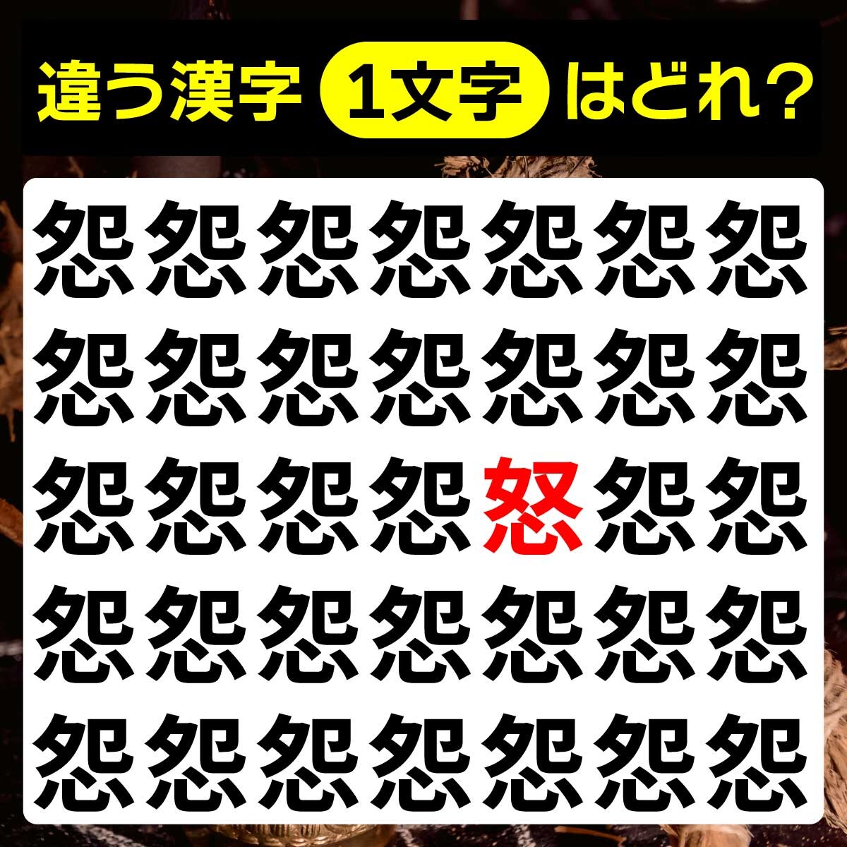 毎日配信中「毎日脳トレ」の時間です! 本日のクイズは「漢字のまちがい探し」に挑戦♪ 同じ漢字が並んでいるように見えますが、実は1つだけ違う漢字が……。よ~く探してみてください!