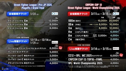 ・「ストリートファイターリーグ: Pro-JP 2025」、「CAPCOM CUP 12/ストリートファイターリーグ: ワールドチャンピオンシップ 2025」の券売スケジュール