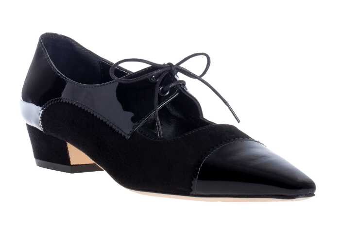 また、パテントとスエードを組み合わせた「FILAKOS/フィラコス」はヒール高さ3cmで179,300円(税込)。異素材のコントラストが、洗練された足元を完成させます。