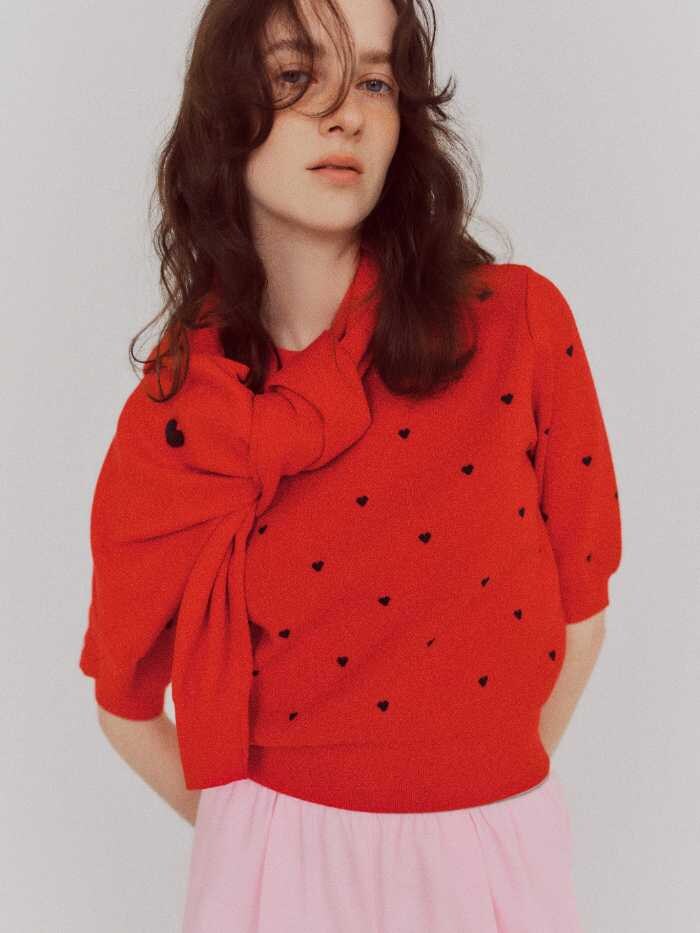 主役級の存在感を放つのは、環境に配慮した素材を使用したハートモチーフのニットアイテム。