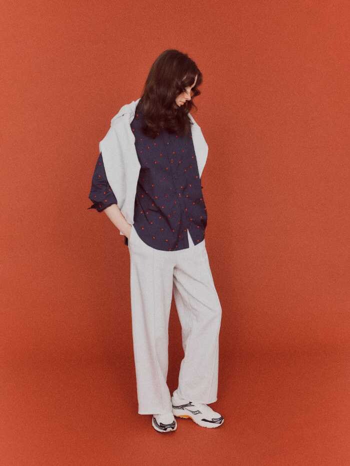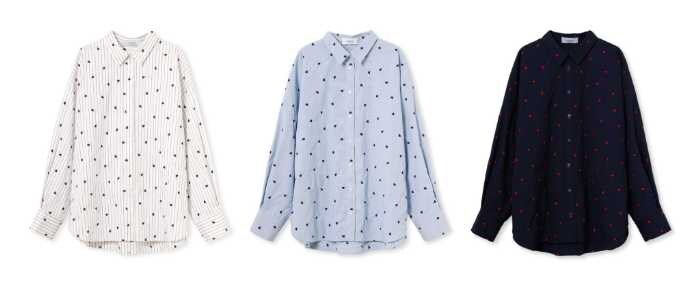 さらに、ハート刺繍ベーシックシャツは19,800円、WHT・BLU・NVYの3色、サイズFで展開。