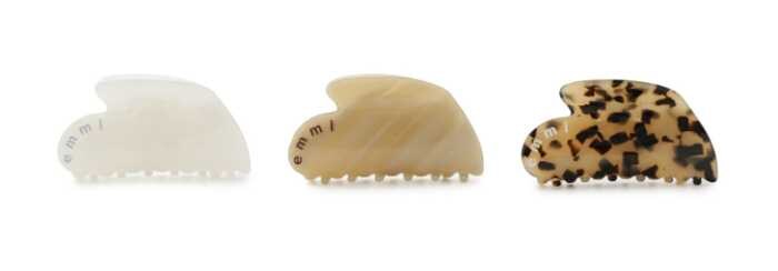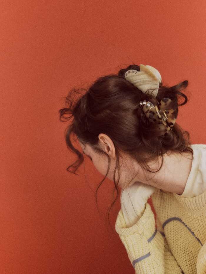 スタイリングのアクセントになる小物類も充実。ニュアンスハートヘアクリップは3,960円、WHT・LBEG・MIXの3色展開。