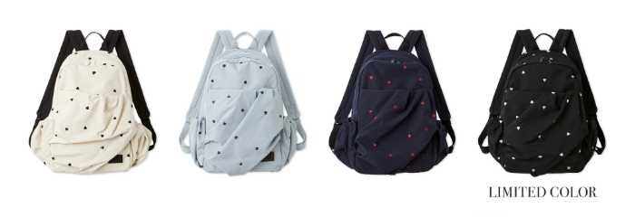ecoハートギャザーボディーバックパックは17,600円、IVR・LBLU・NVY・BLK(USAGI ONLINE限定)の4色展開です。
